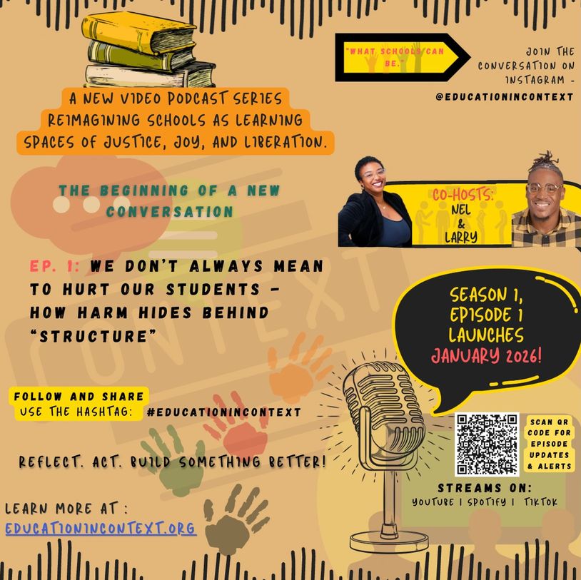 ##EducationInContext is a video podcast series Reimagining What Schools Can Be. In every conversation we challenge the narratives that perpetuate educational inequities for Black and Brown students. To disrupt these deeply embedded racial inequities, the conversation must shift!